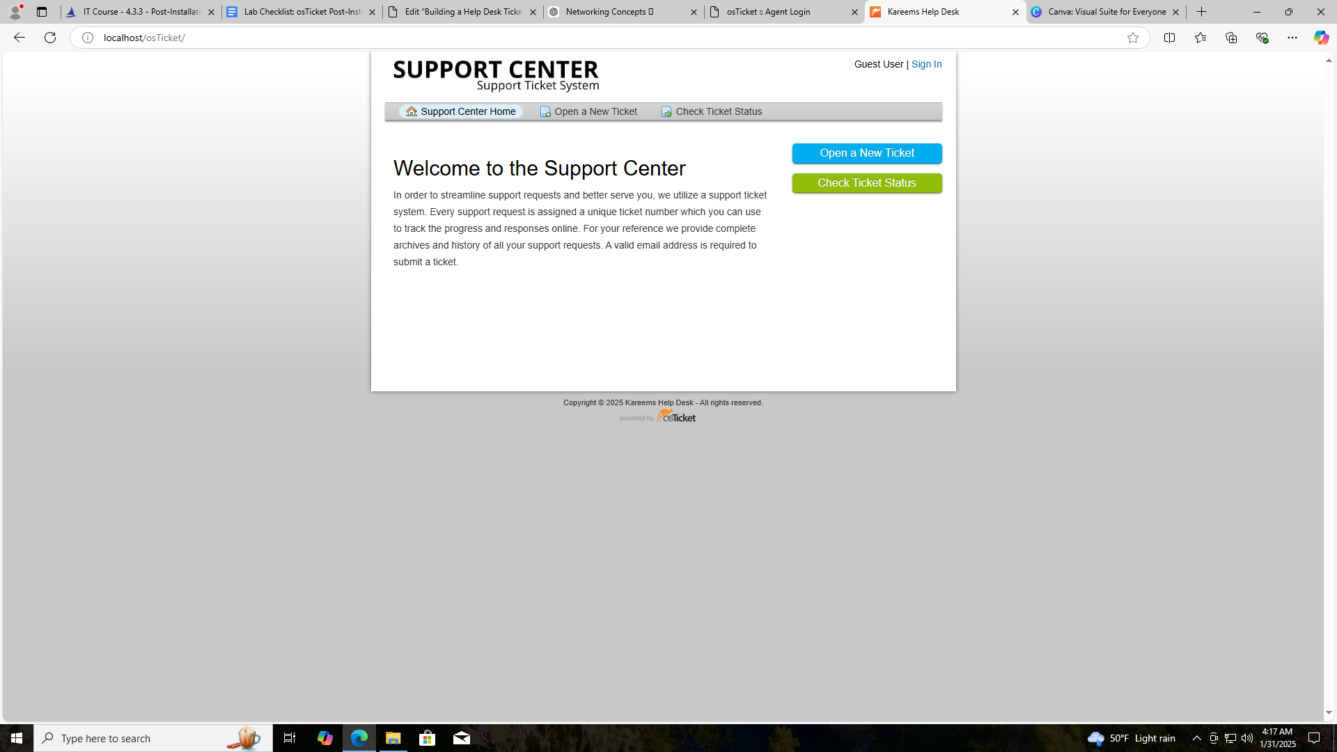✅ Simulating an IT help desk workflow using osTicket for structured support requests.